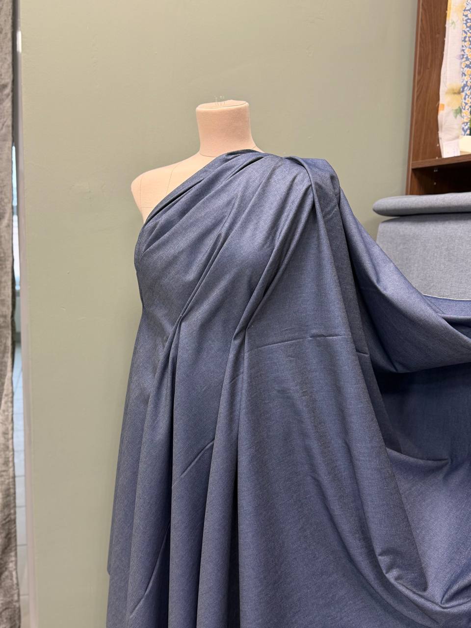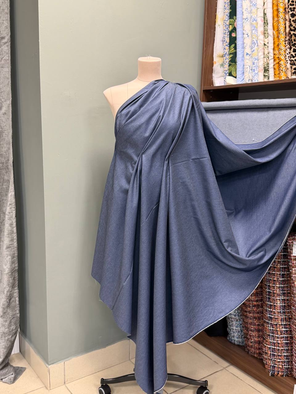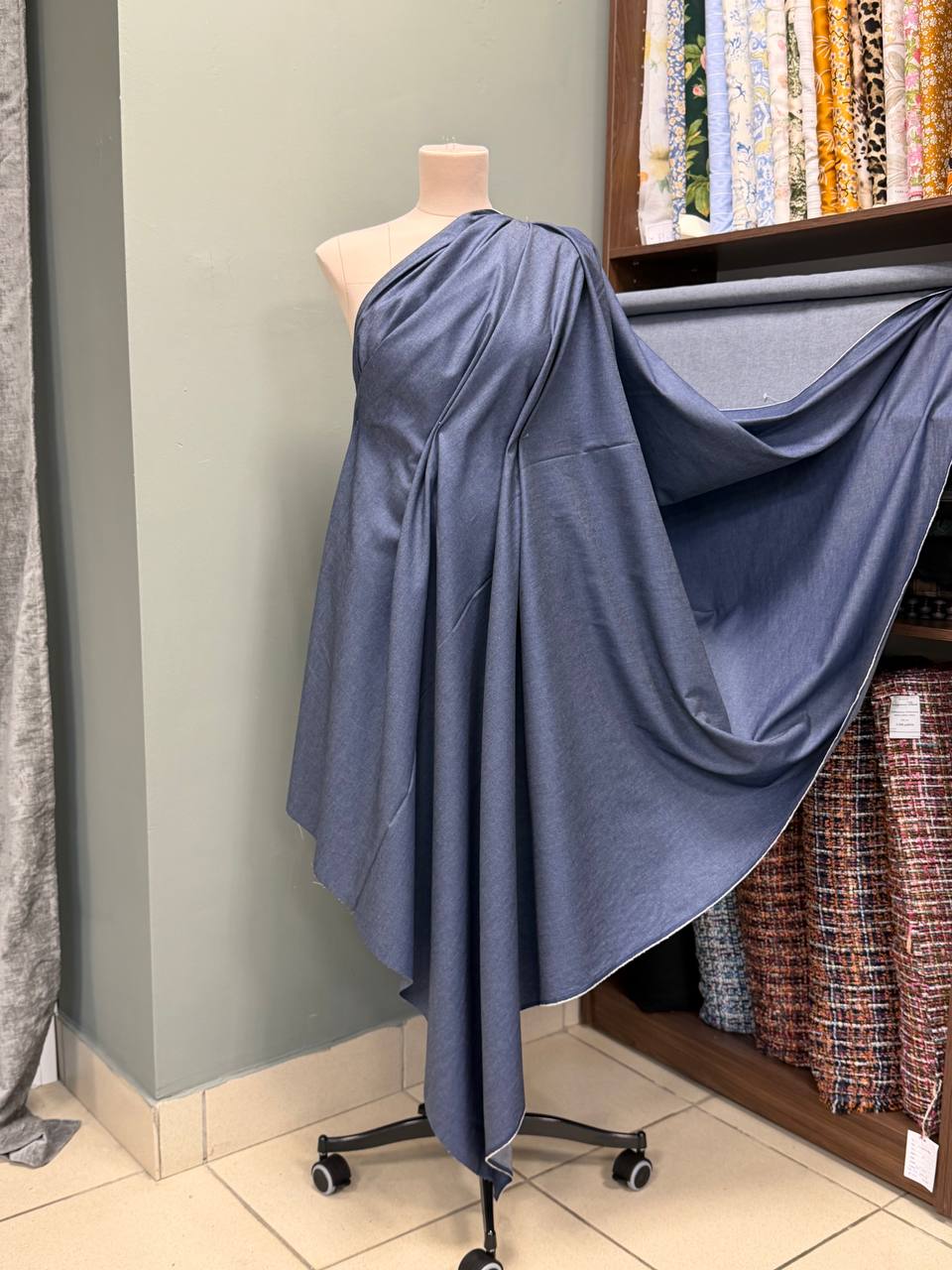 Остаток 9.2 м. Тонкая струящаяся джинса. Полотно шелковистое, не сухое, хорошо драпируется. Подойдет для платьев, блузок, юбок, широких брюк. Хорошо будет смотреться в сборке.