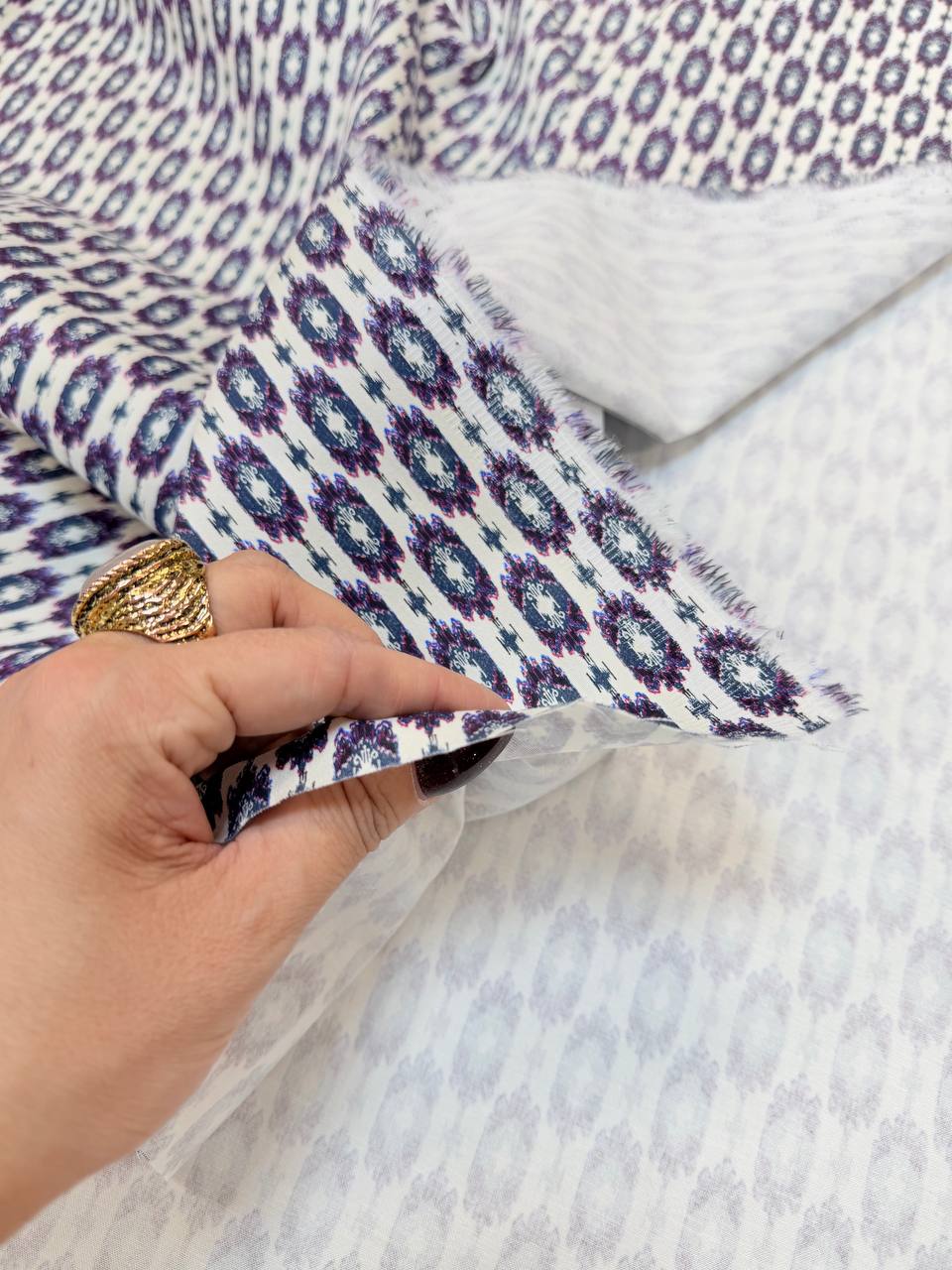 Молочный оттенок с фиолетовым мелким рисунком