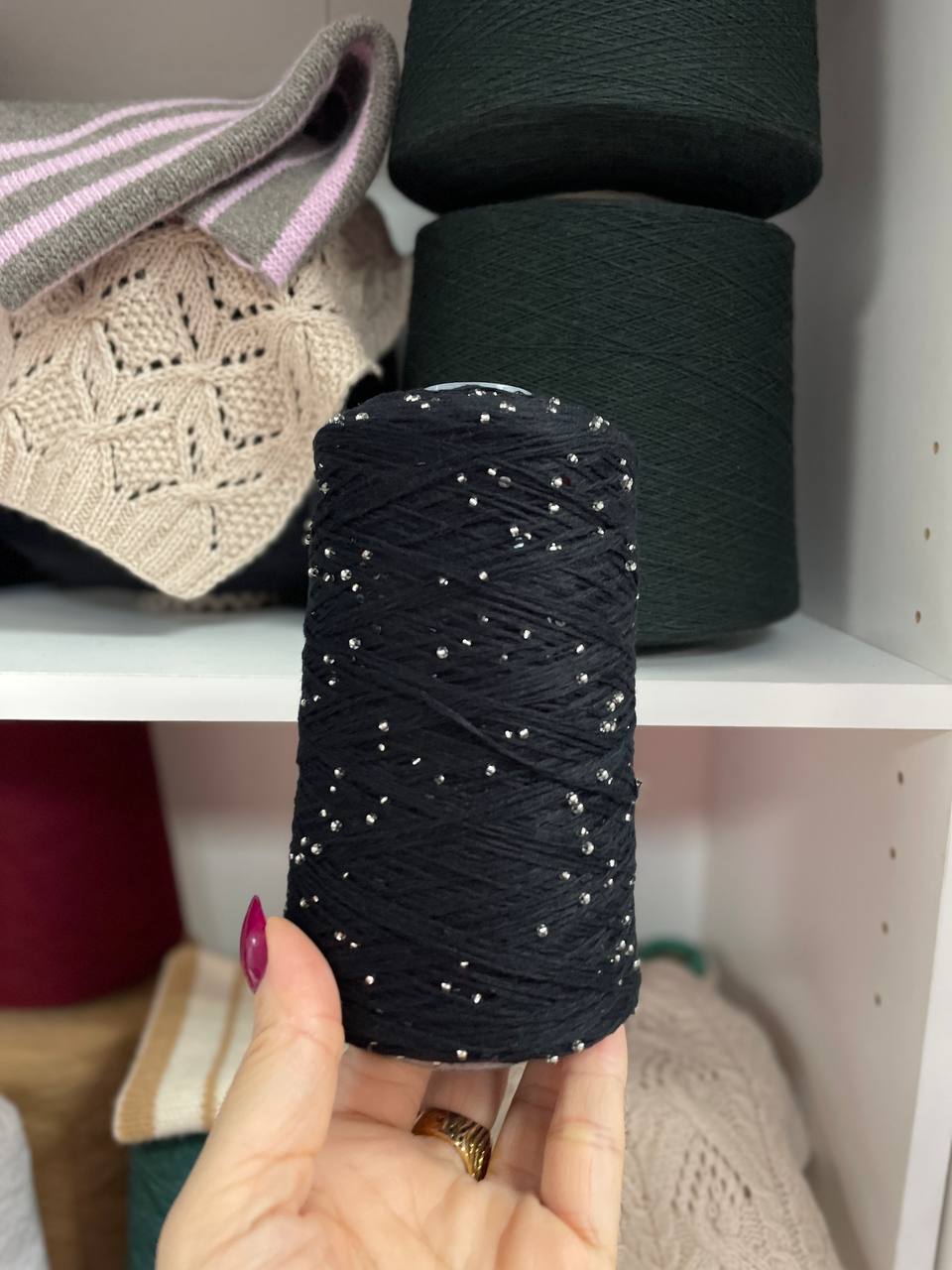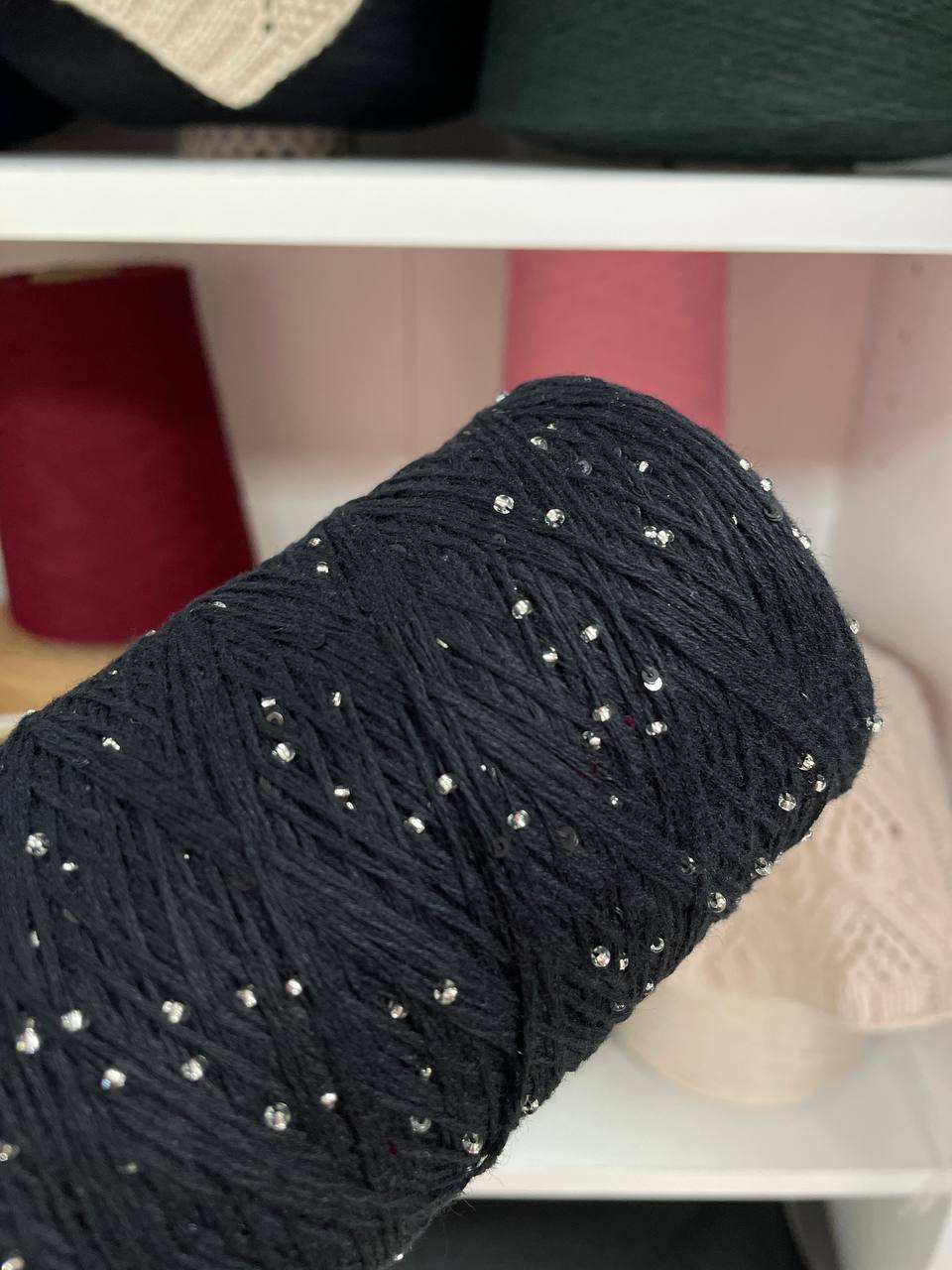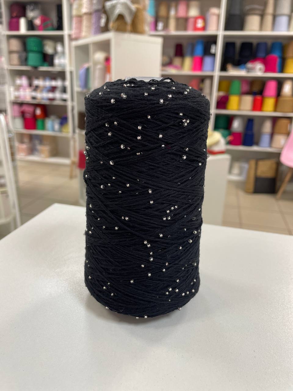 Очень мягкая, нежная ниточка хлопка с прозрачным бисером и 2мм пайеточками. расположены хаотично, на расстоянии 2-8см.