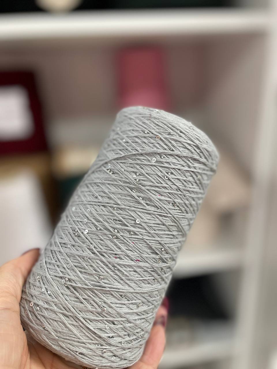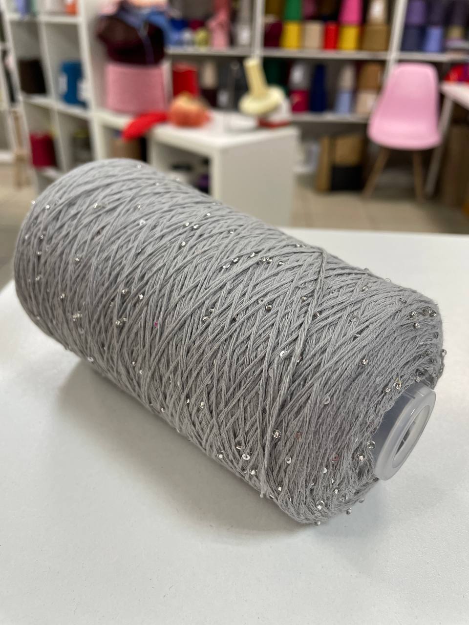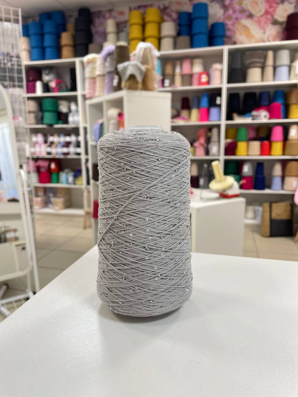 Очень мягкая, нежная ниточка хлопка с прозрачным бисером и 2мм пайеточками. расположены хаотично, на расстоянии 2-8см.