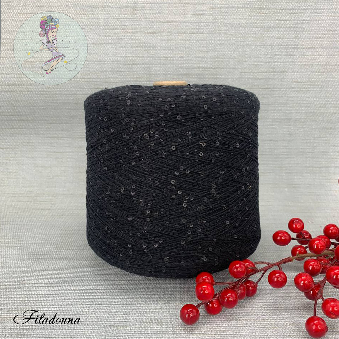 Хлопок с пайетками черный/матовые 800м 5₽ 100%Cot Купить