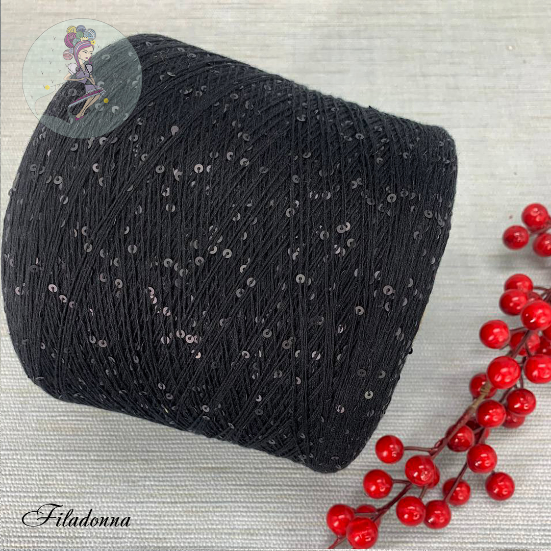 Хлопок с пайетками черный/матовые 800м