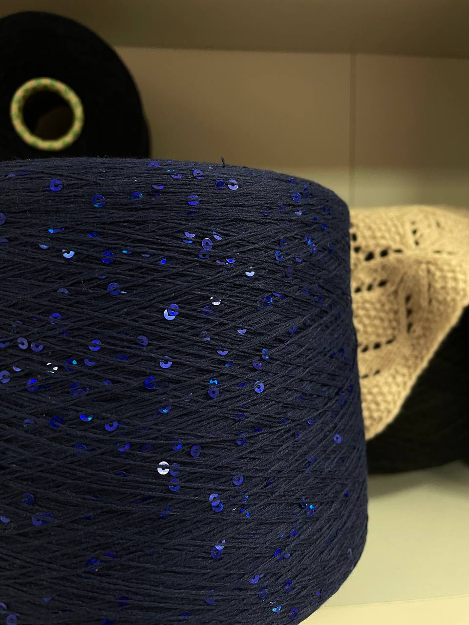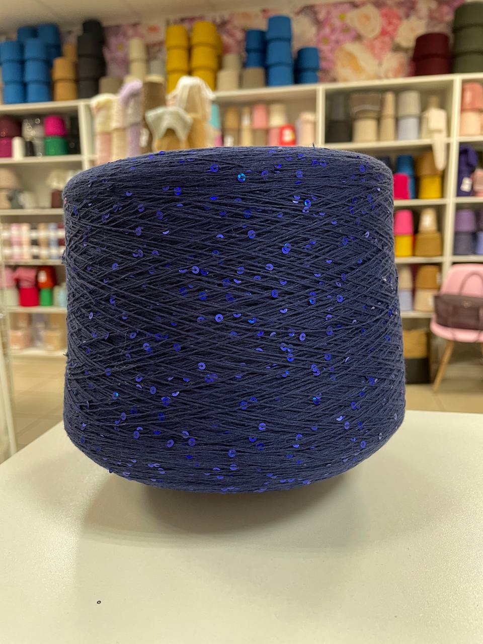 Темно- синий, пайетки синие