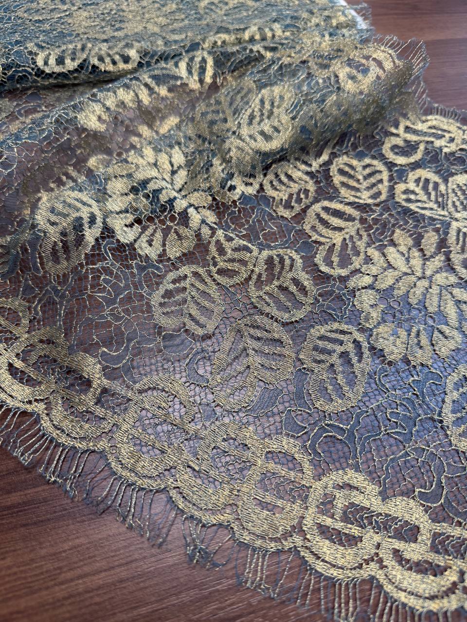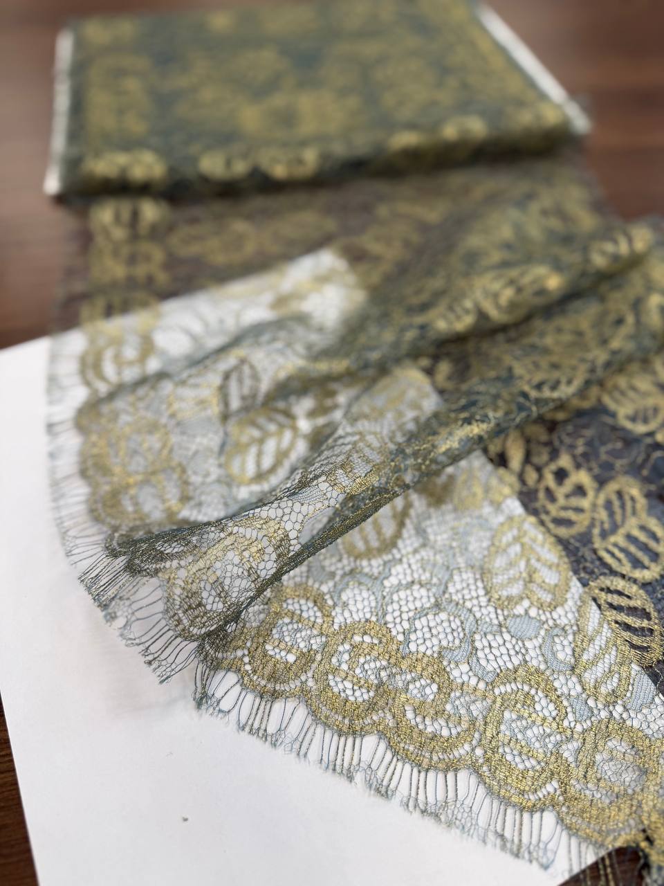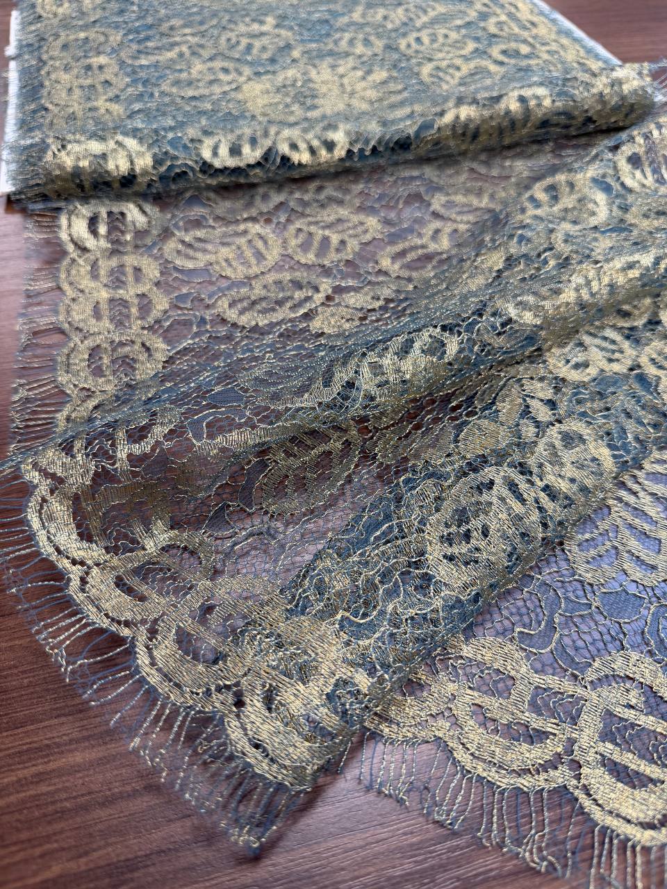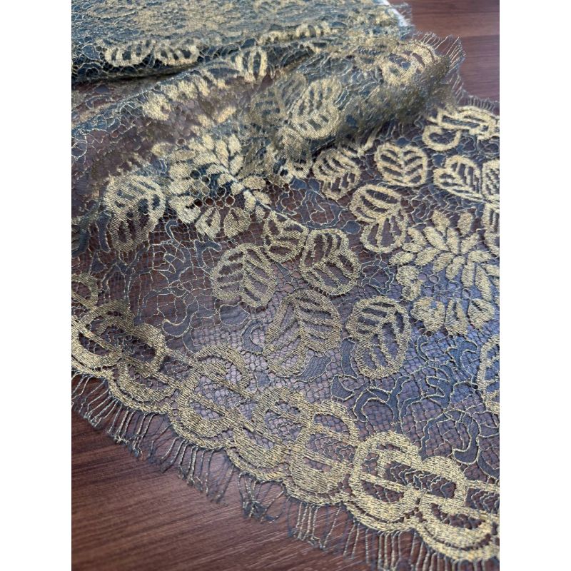 Кружево французское изумруд золото