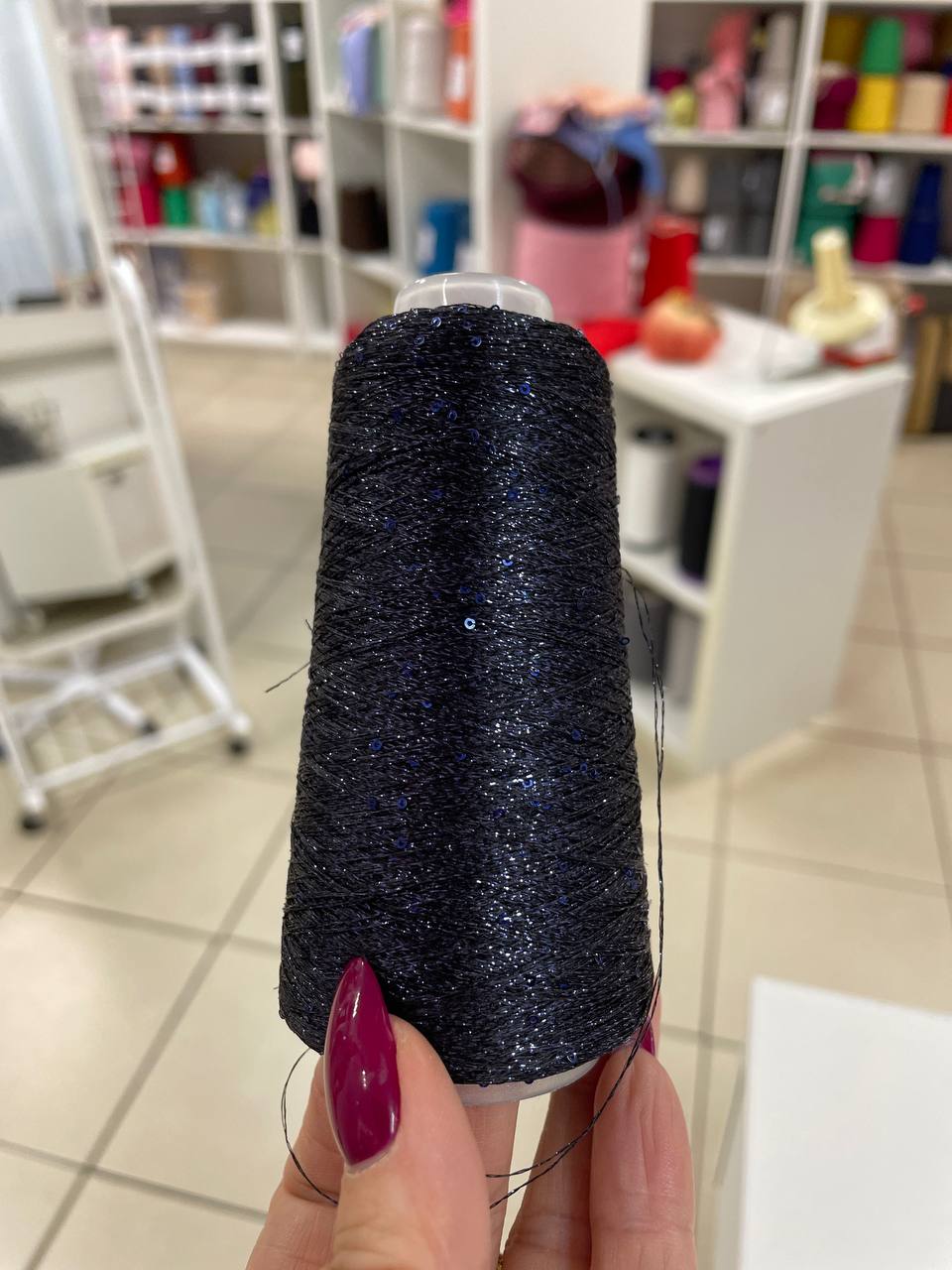 Состав Полиэстер (Pl)100% Цвет Темно-синий пайетки синие Метраж 1800м/50гр Цена 640 руб.