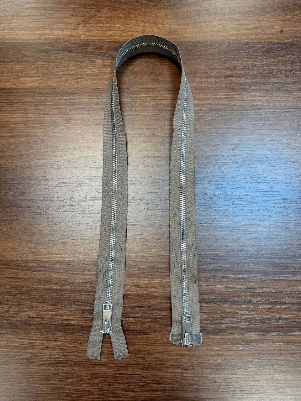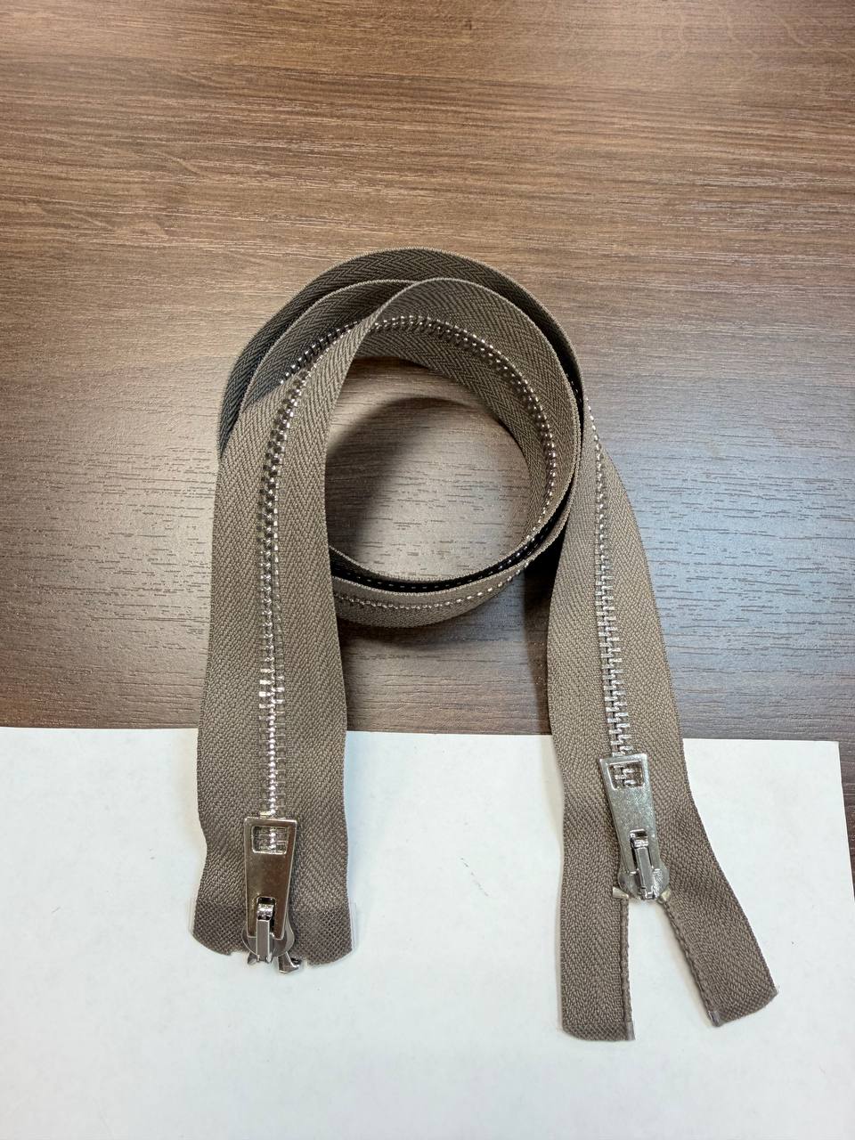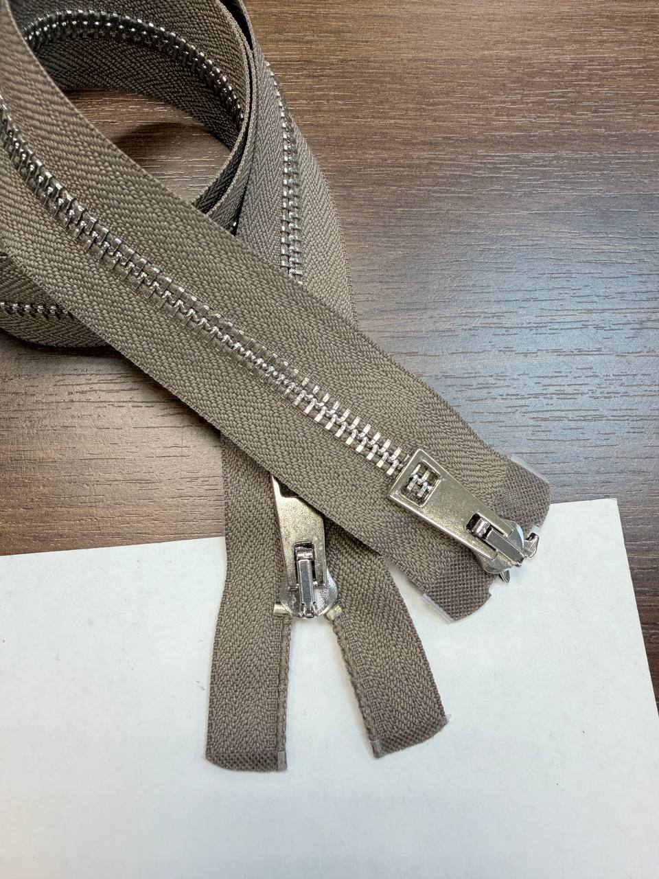 Молния разъемная двузамковая серебро тауп 80см