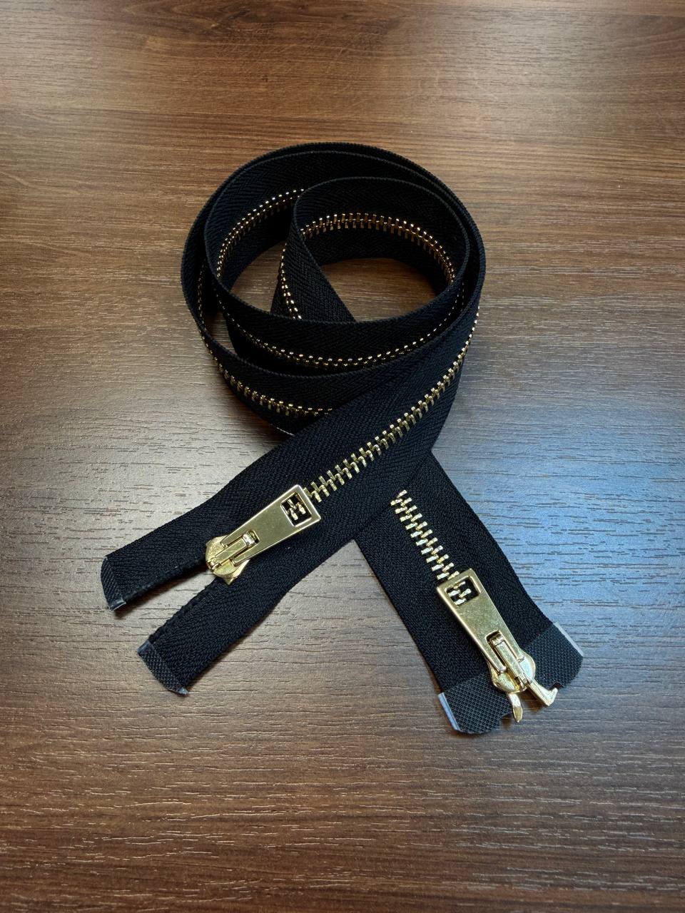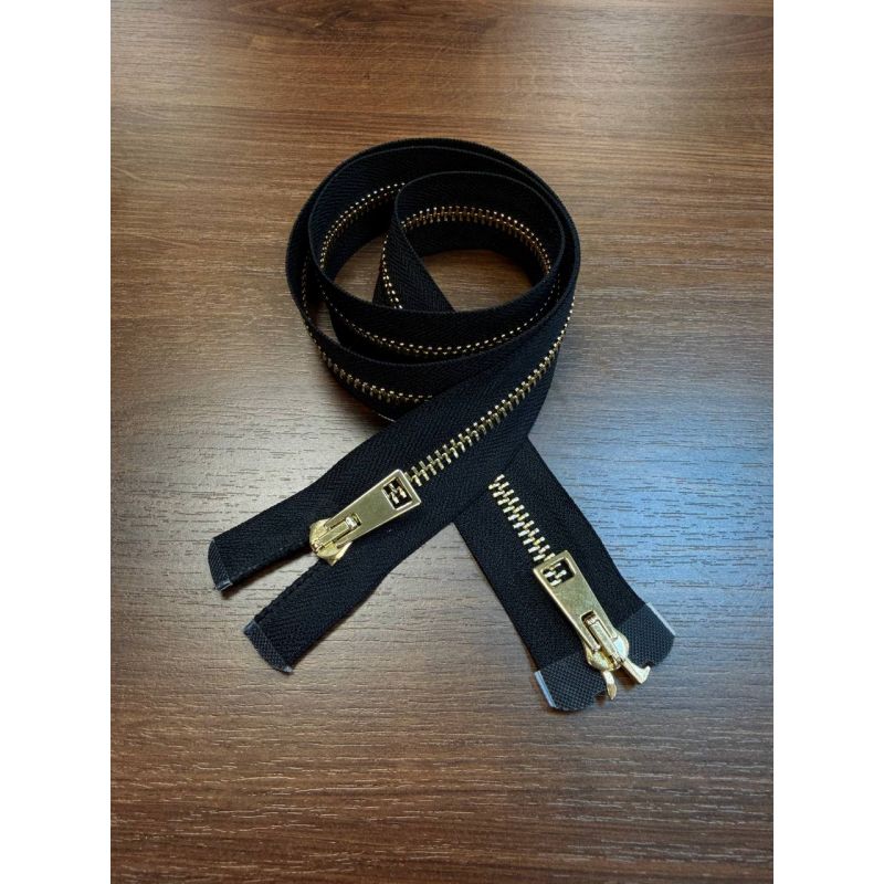 Молния разъемная двузамковая золото черный 80см