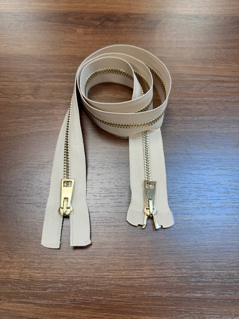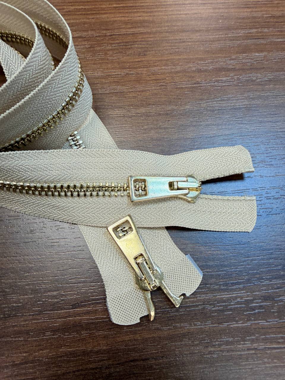 Молния разъемная двузамковая золото светлый беж 80см