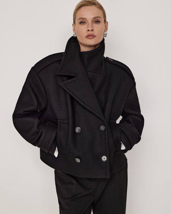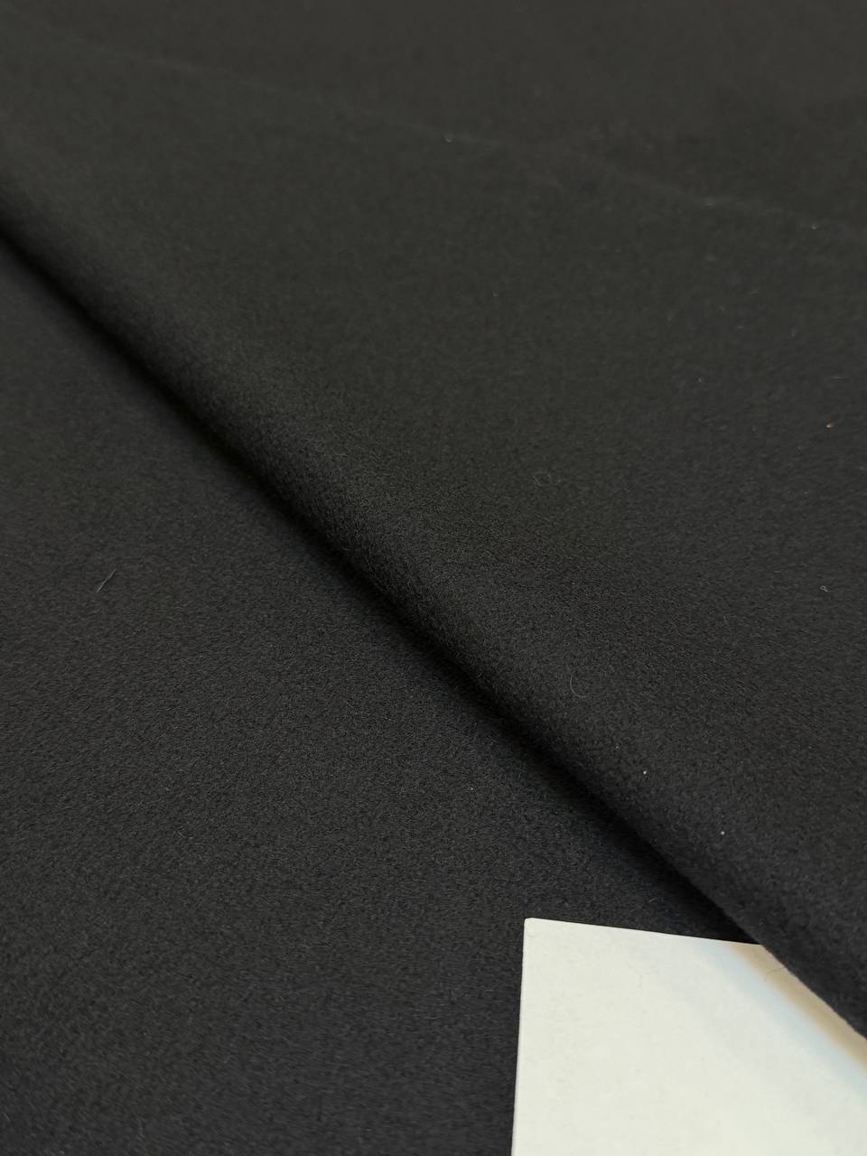 Остаток 8 м. Плотная пальтовая ткань чисто черного цвета. Прекрасно держит форму и отлично подойдет для полупальто, бушлатов.