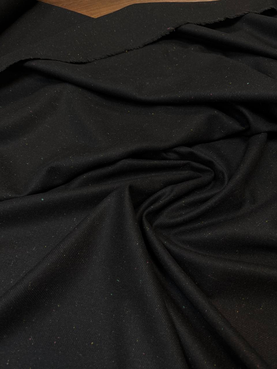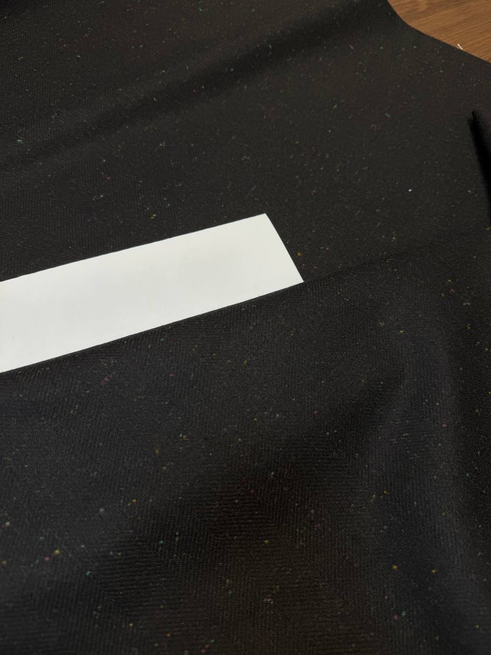 Остаток 6.6 м. Ткань отлично подойдет для теплых жакетов и пиджаков, а так же легких пальто. Плотная, хорошо держит форму. Поверхность гладкая в едва заметный рубчик с разноцветными крапинками.