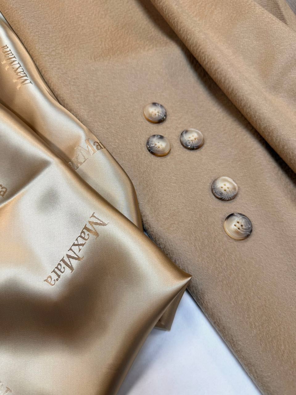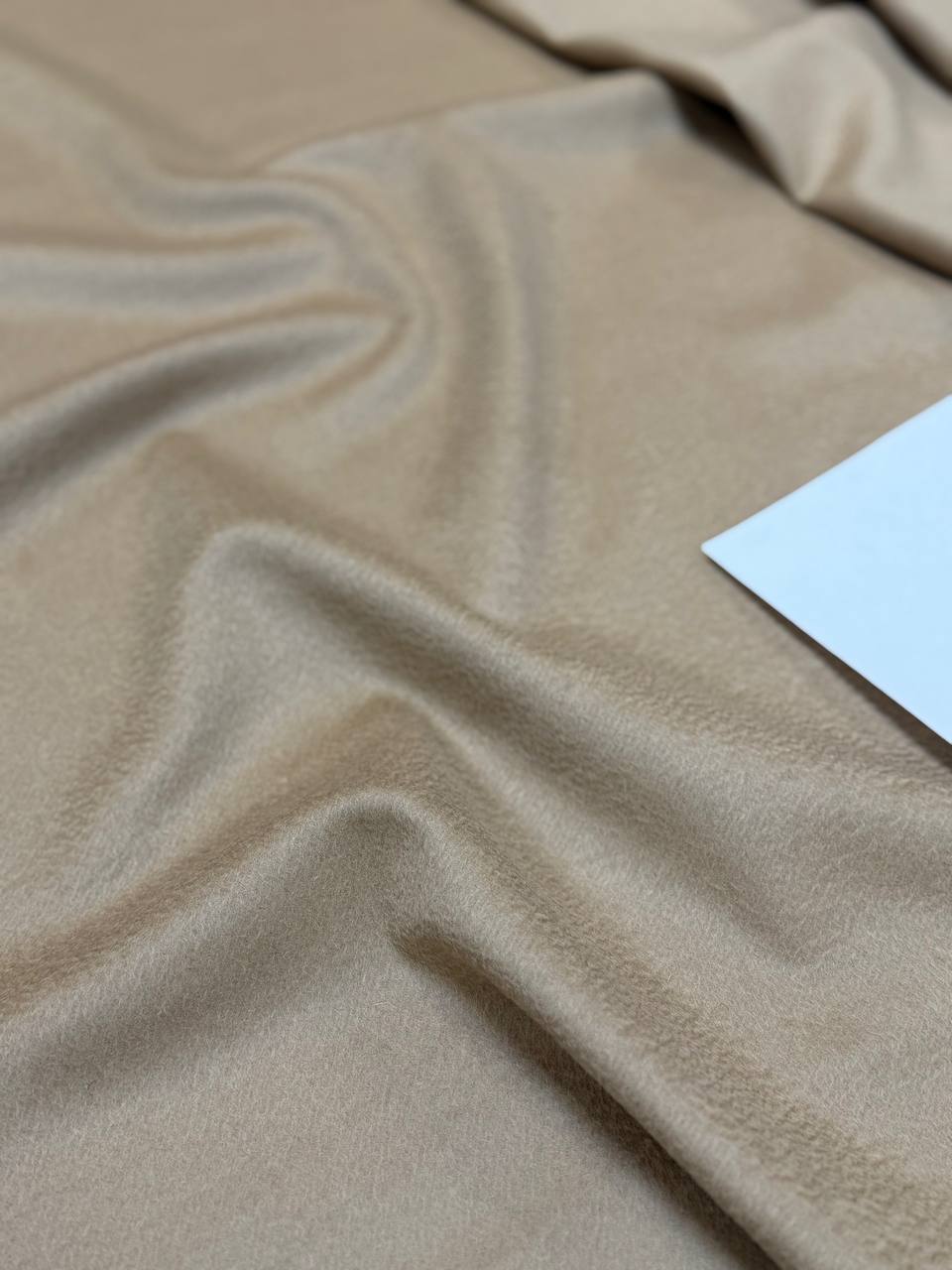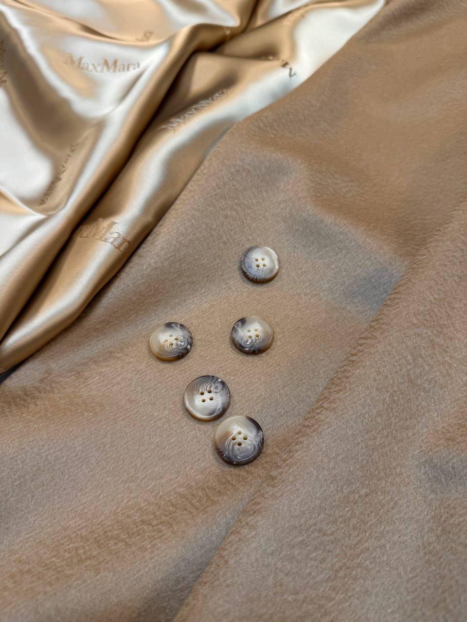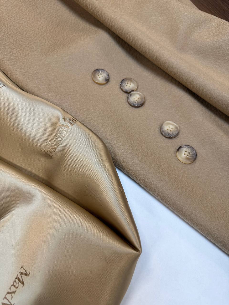 Полотно имеет характерный волнистый ворс "зебеллино", что делает полотно узнаваемым и оригинальным. Идеально для классического пальто. Оттенок очень красивый беж, классика Max Mara.
