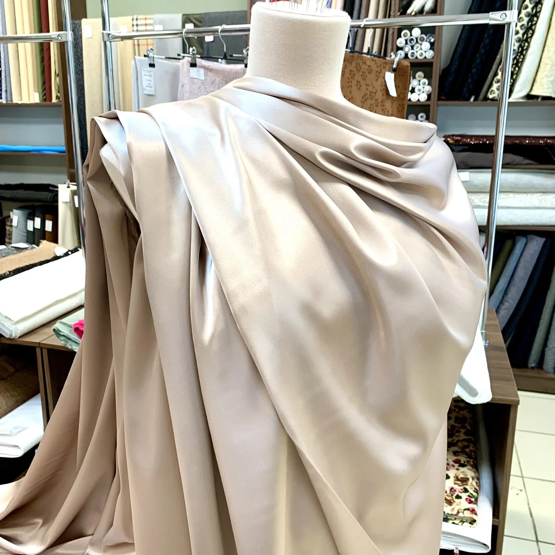 Шелк атласный беж. Нюд