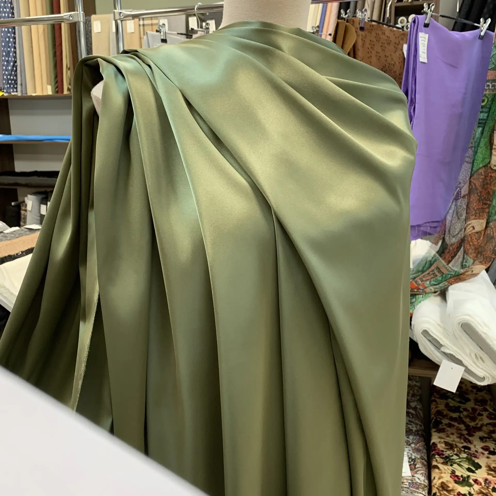 Шелк атласный хаки