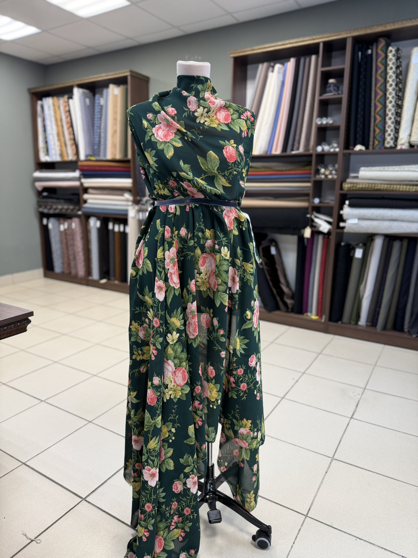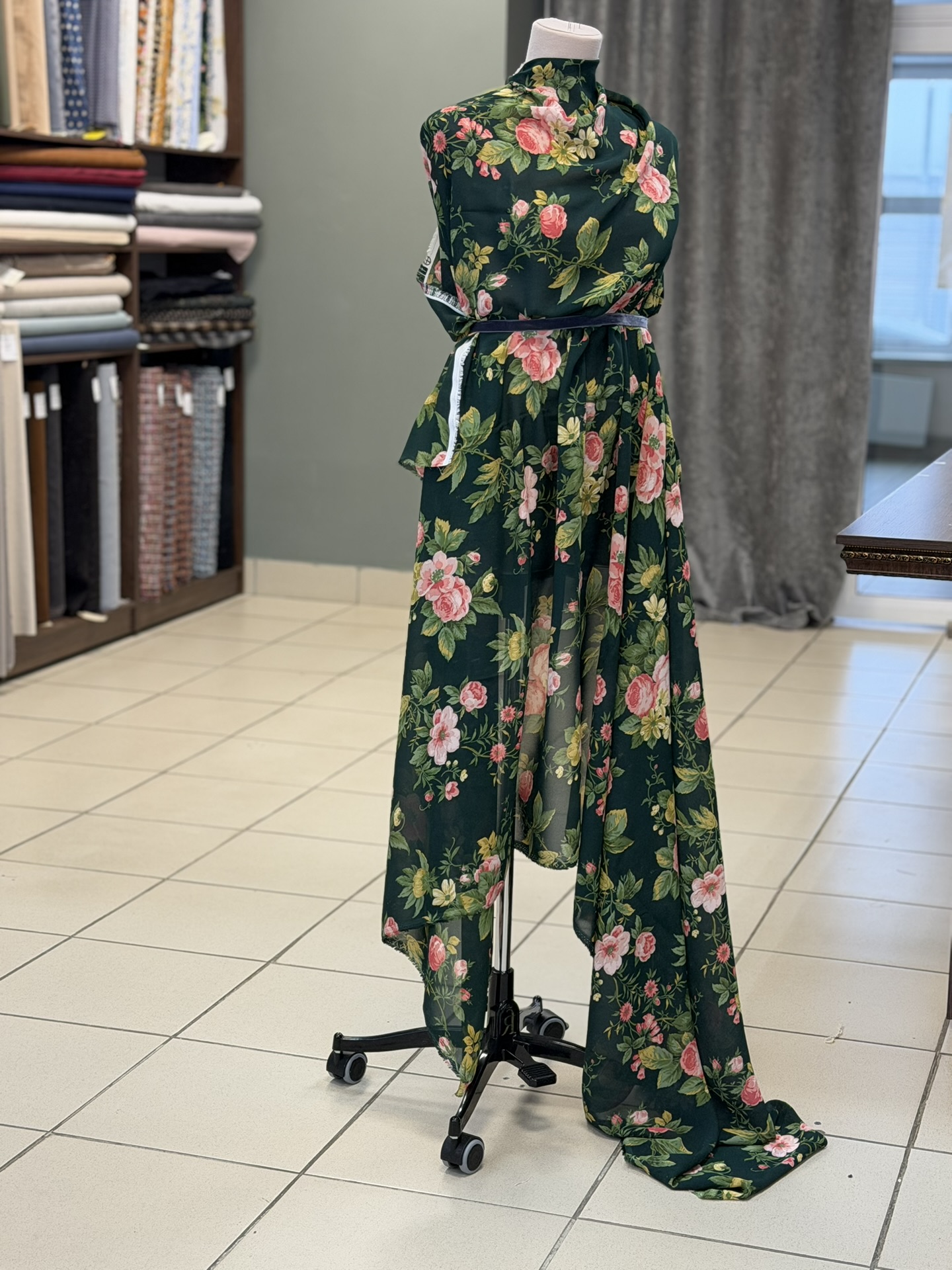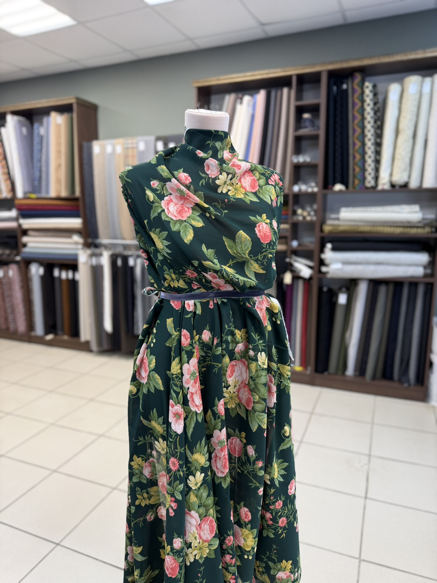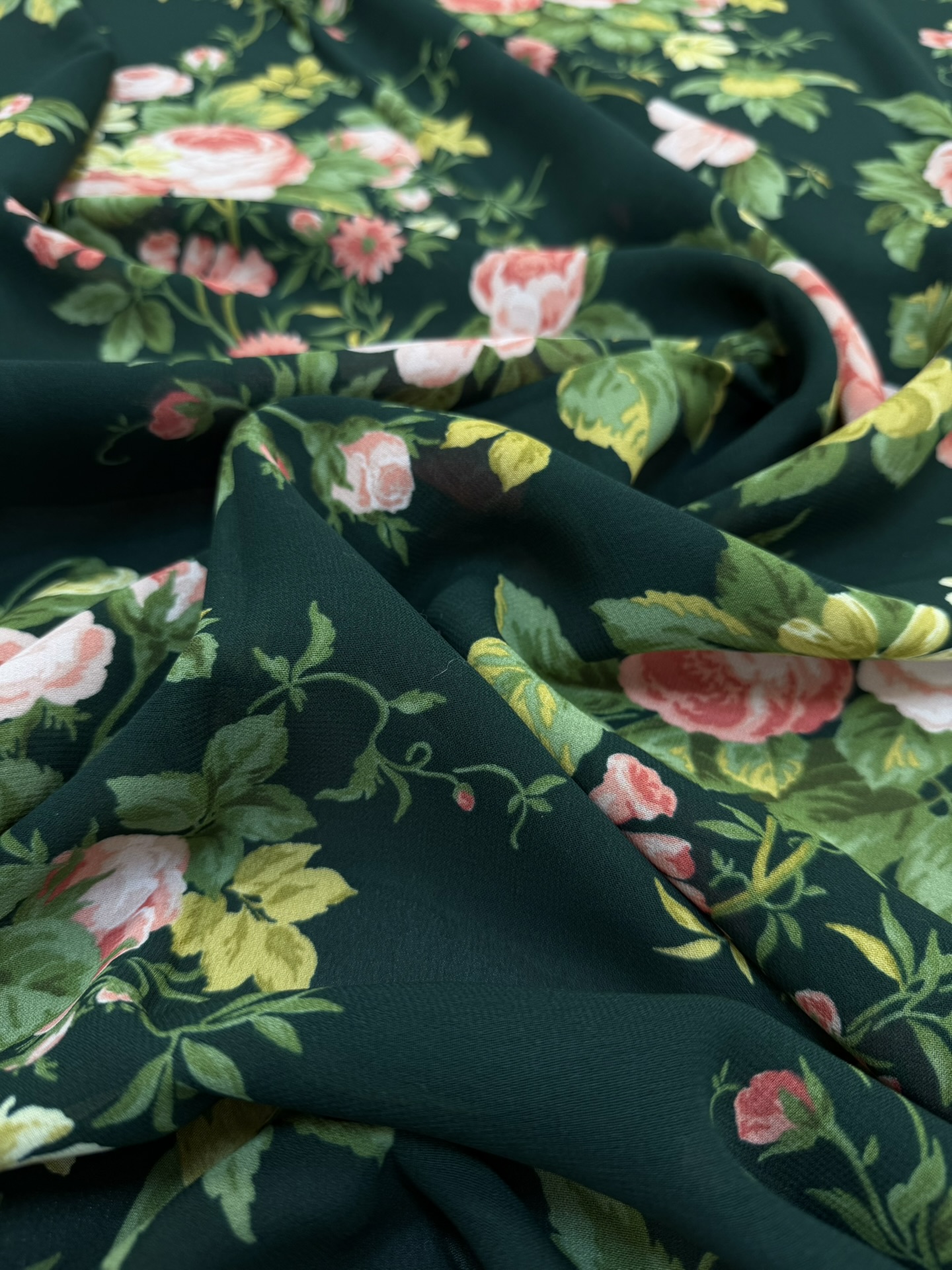 Темно-зеленый с розами