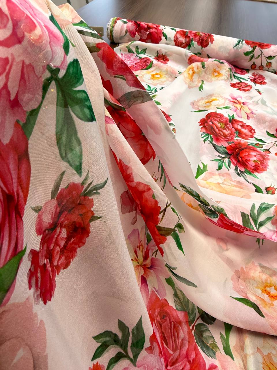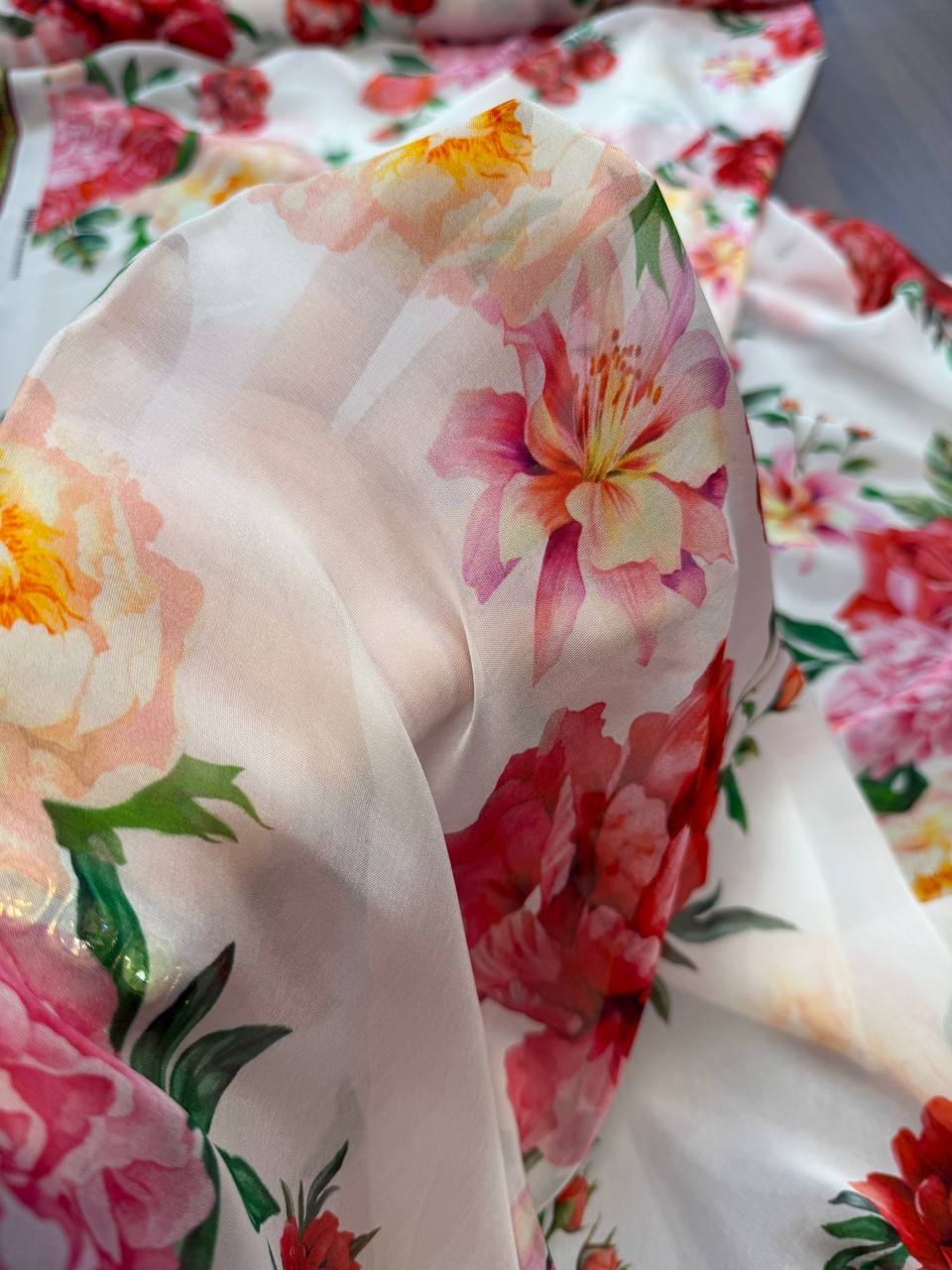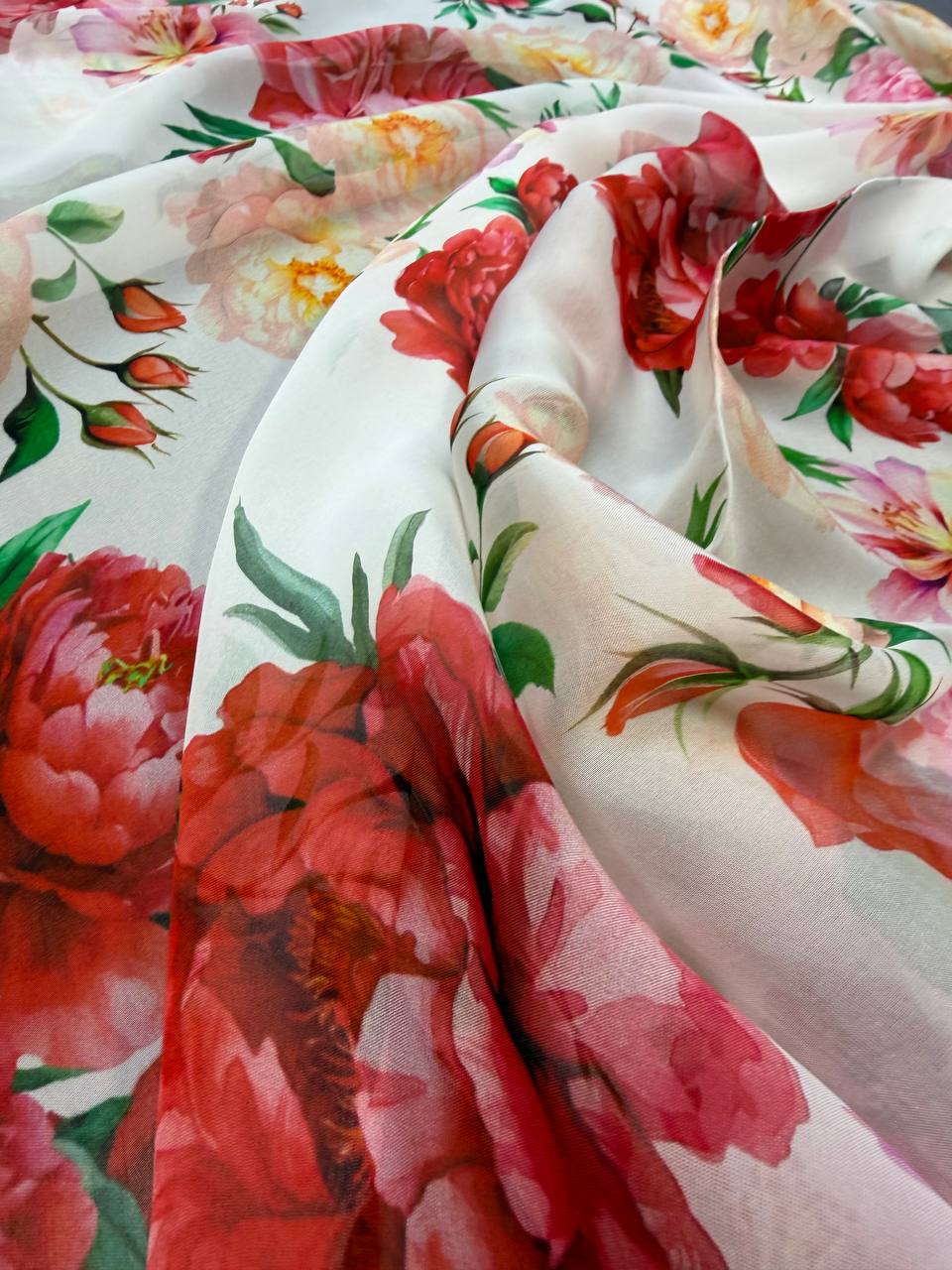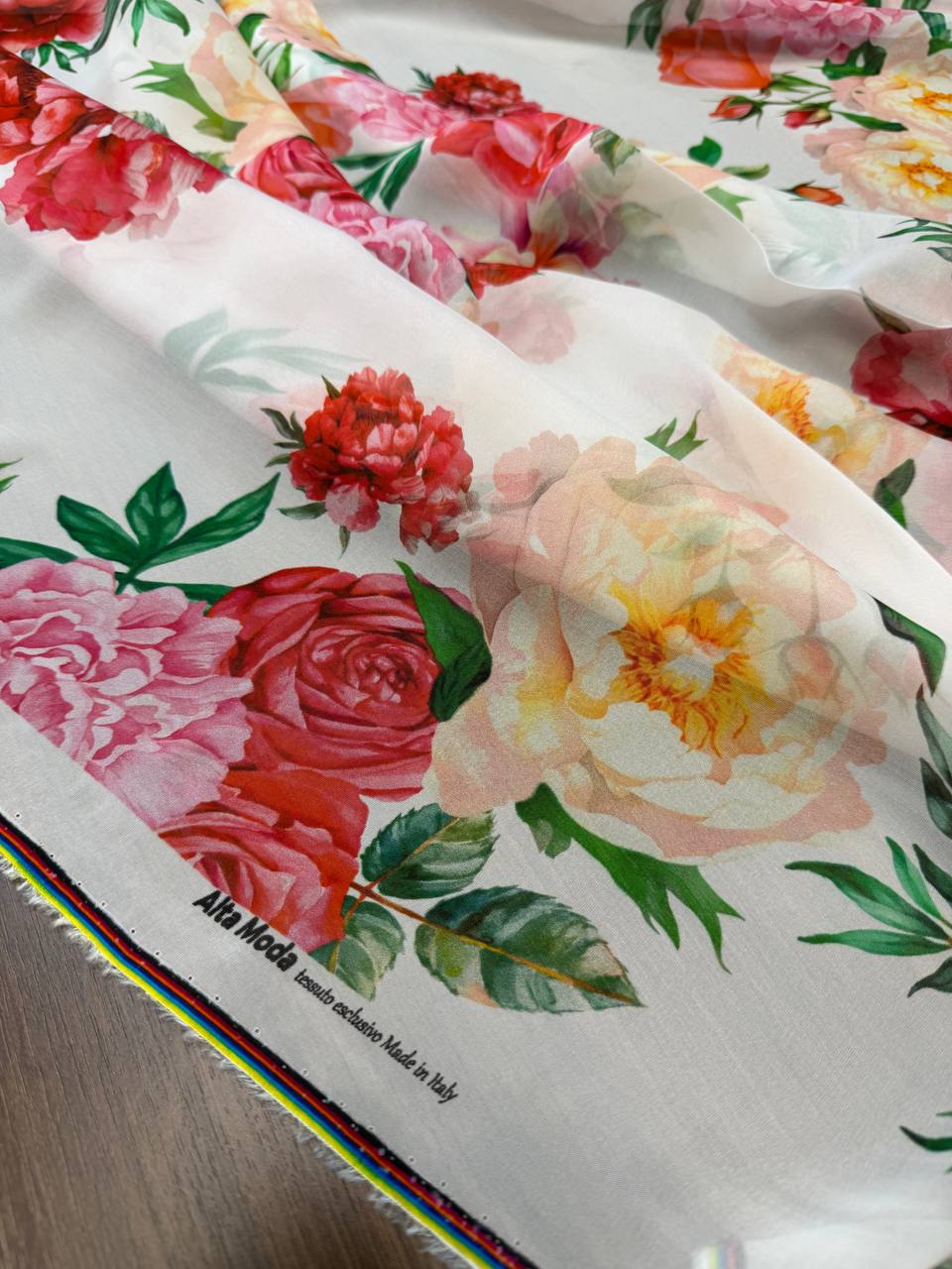 Роскошный, нежный шифон от Alta Moda. Тактильноон напомнит 100% шелк. Прекрасно подойет для нарядных летних платьев, блузок и сарафанов. Именитые бренды выбирают для своих коллекций ткани этого производителя.