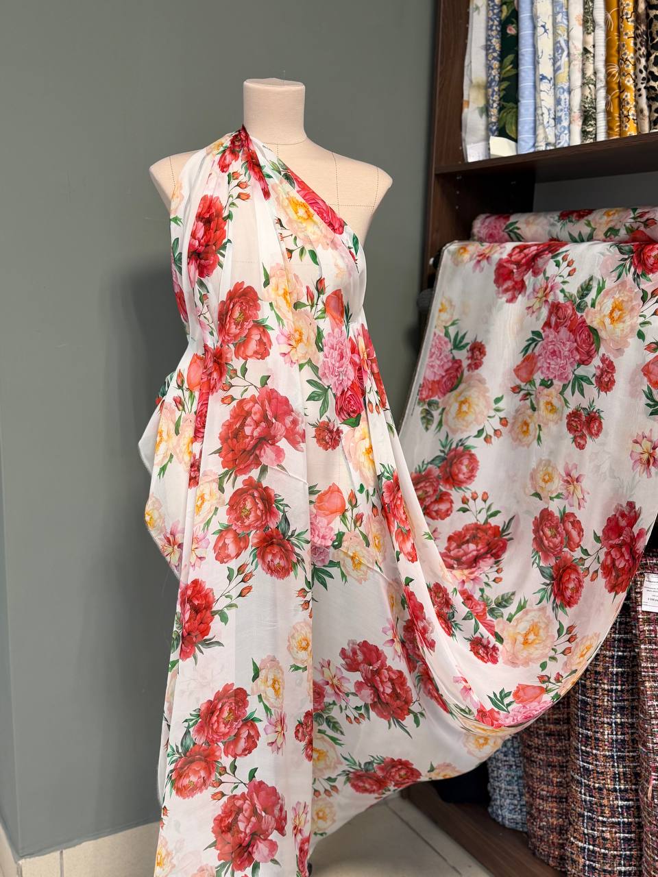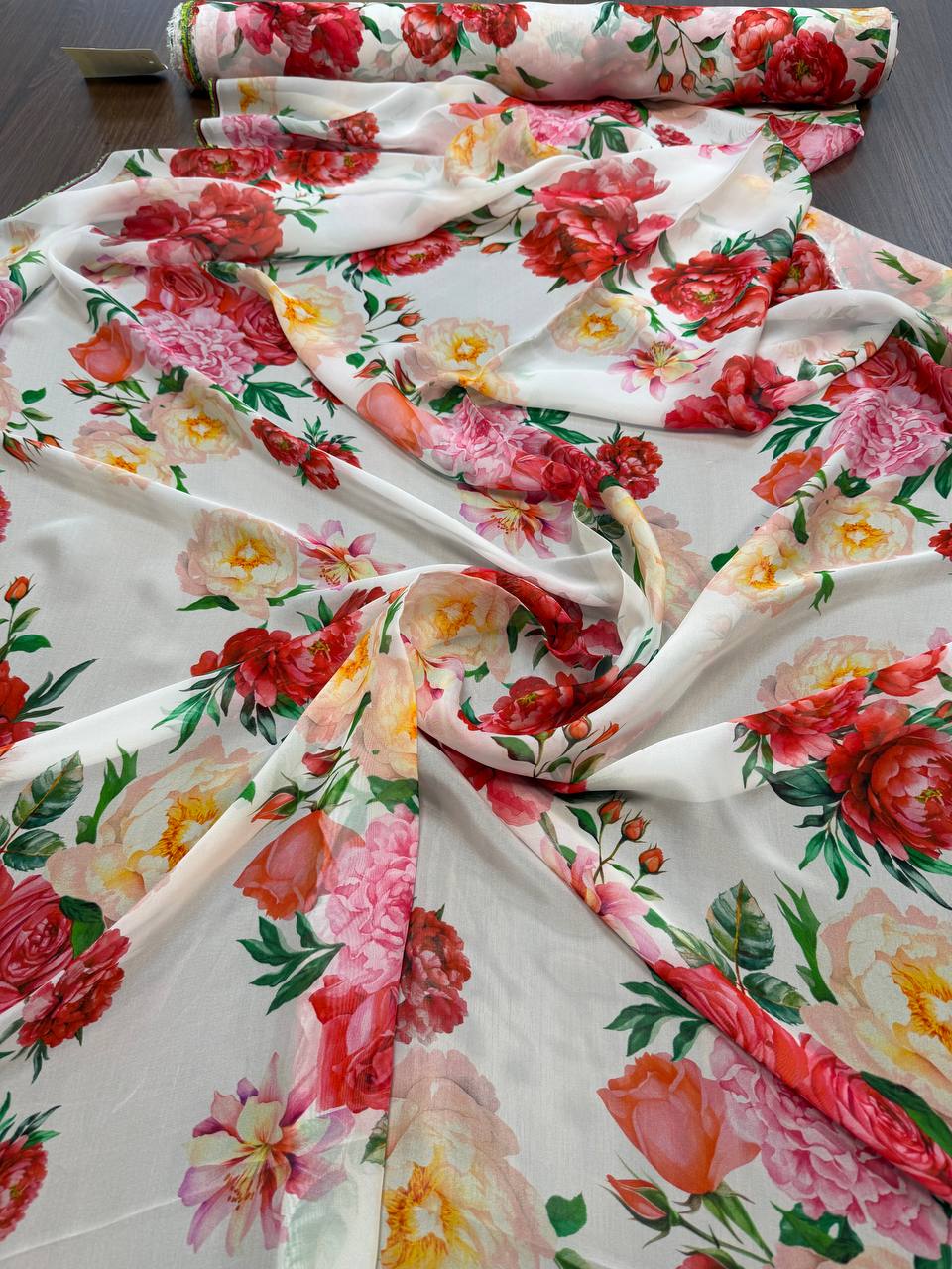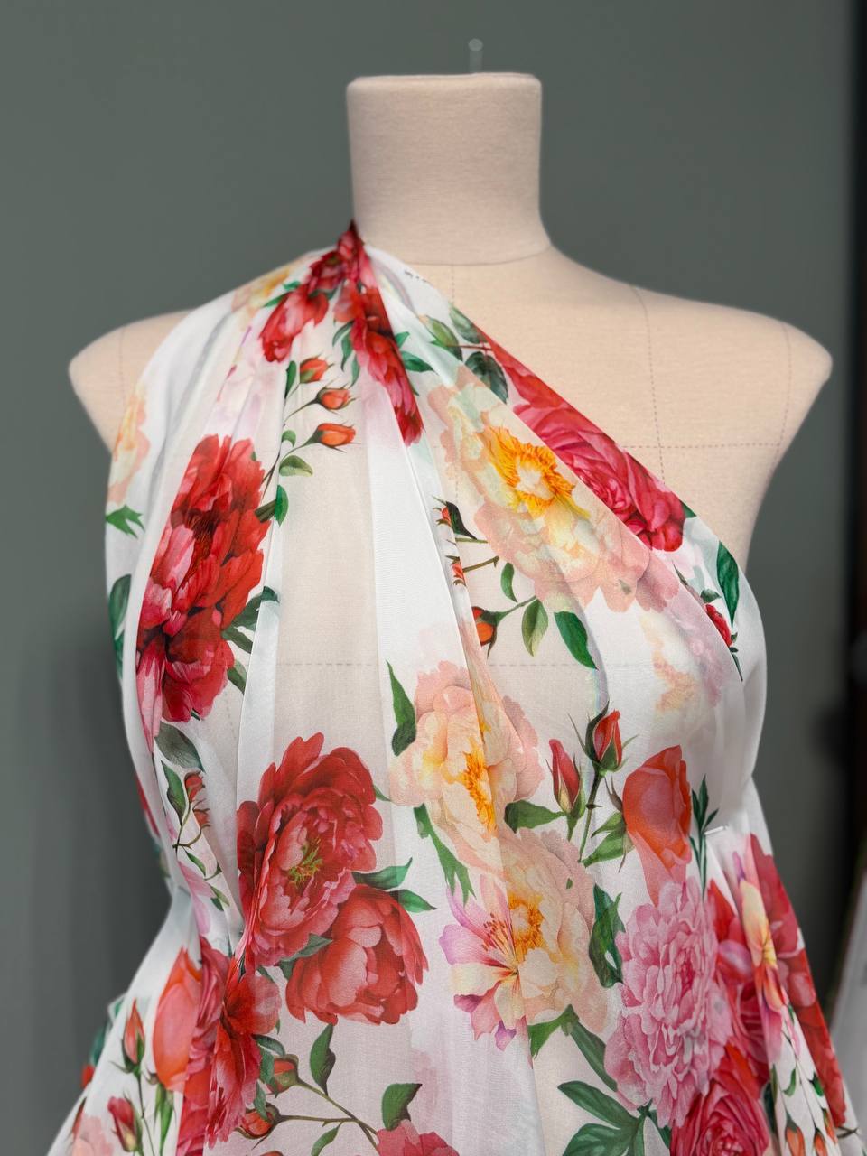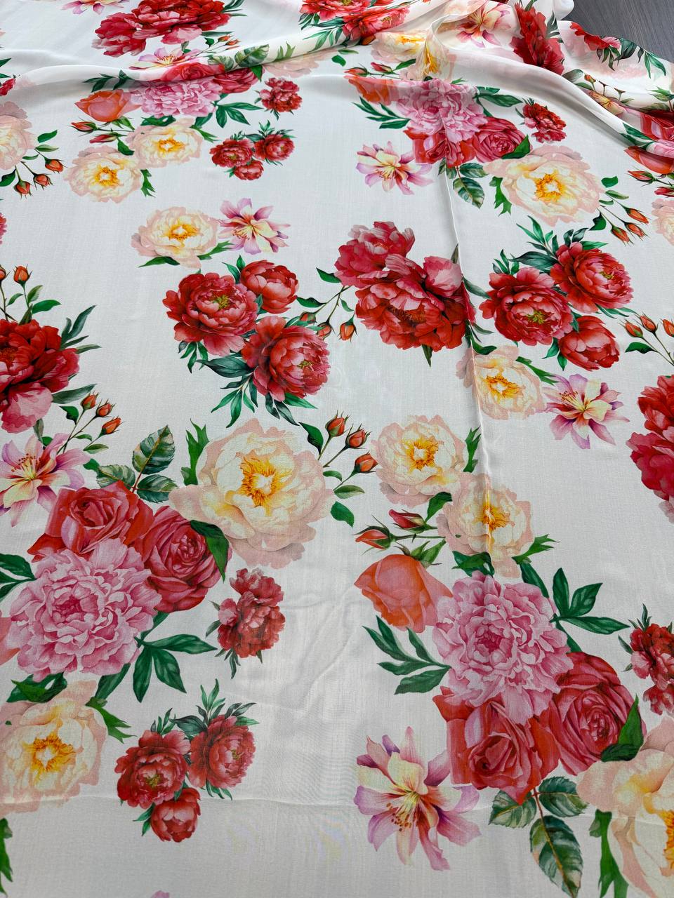 Роскошный, нежный шифон от Alta Moda. Тактильноон напомнит 100% шелк. Прекрасно подойет для нарядных летних платьев, блузок и сарафанов. Именитые бренды выбирают для своих коллекций ткани этого производителя.