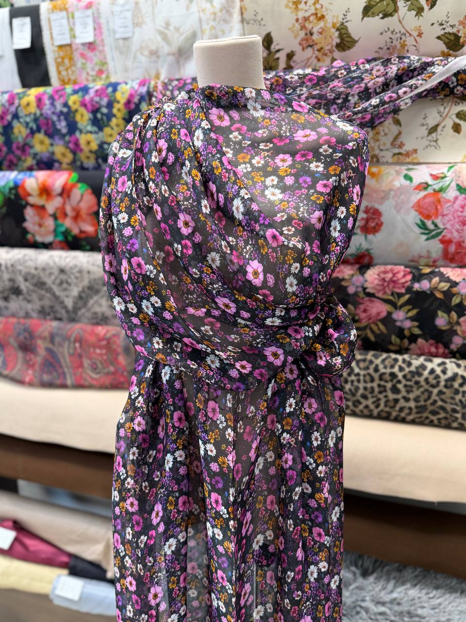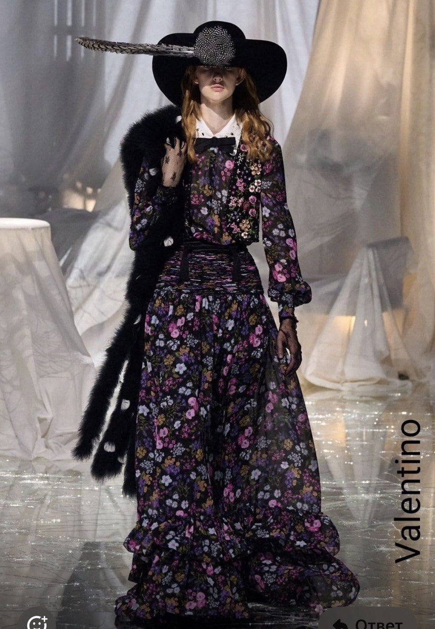 На темном фоне мелкие цветы Valentino