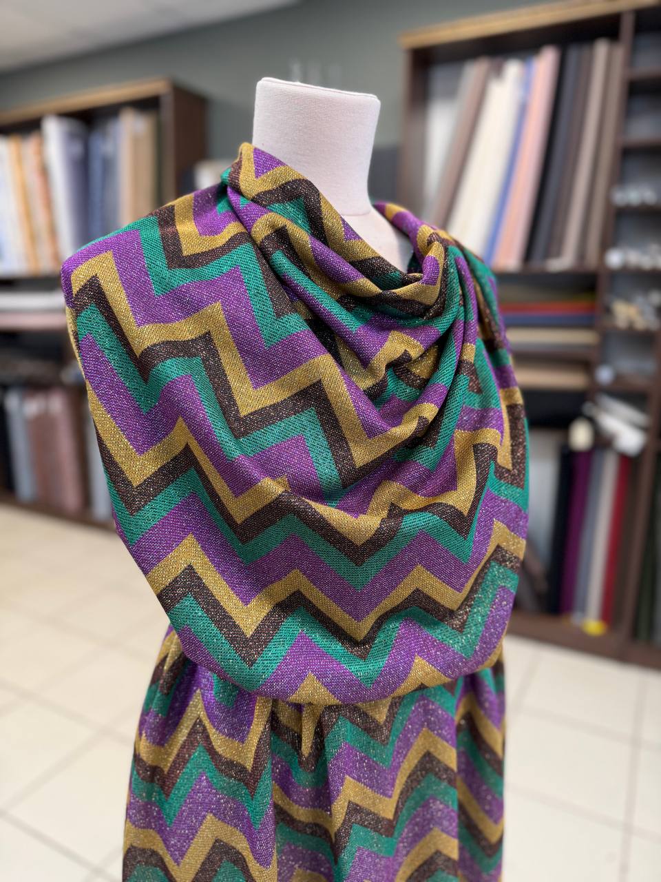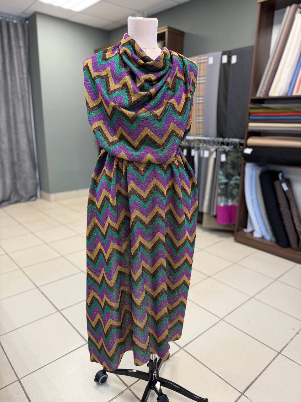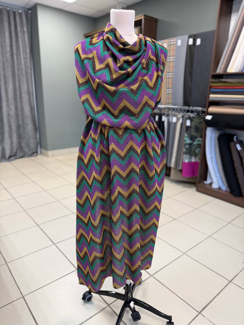 Нарядный трикотаж джерси от Missoni с характерным для этого бренда деликатным блеском люрекса.
