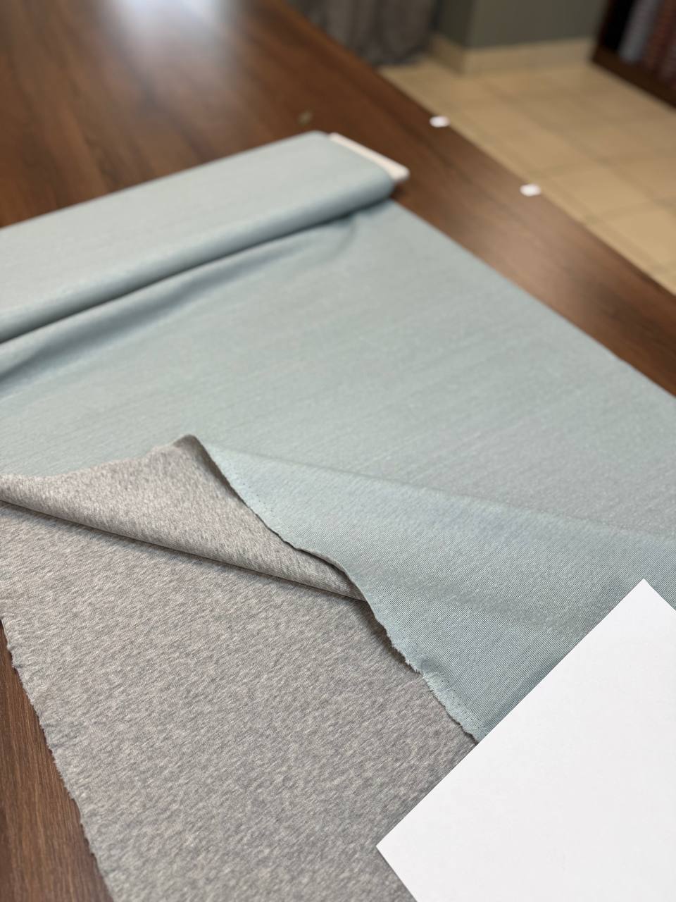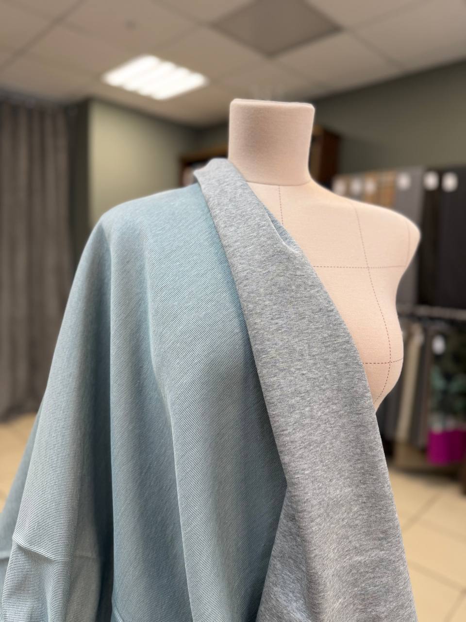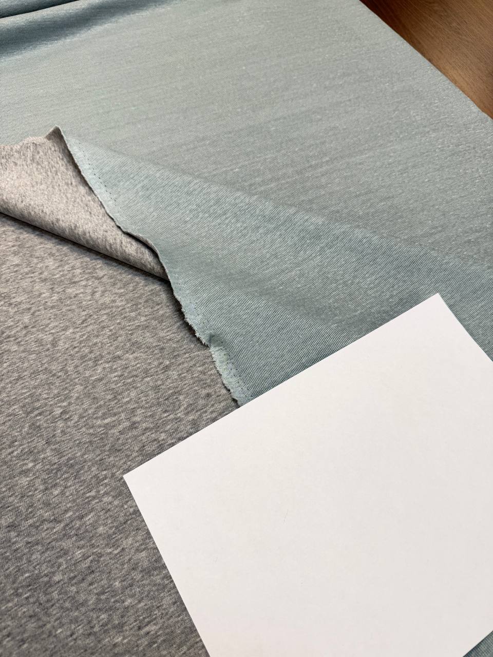Плотный двухсторонний трикотаж со стока Brunello Cucinelli. Полотно плотненькое, мягкое и пластичное. Одна сторона серый меланжевый хлопок, вторая сторона серо-голубой лен.